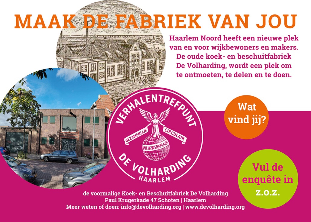 Daar bevindt zich in de voormalige Van Dijkβs Koek- en Beschuitfabriek De Volharding een levendige community van wijkbewoners, makers, verhalers, denkers en doeners.